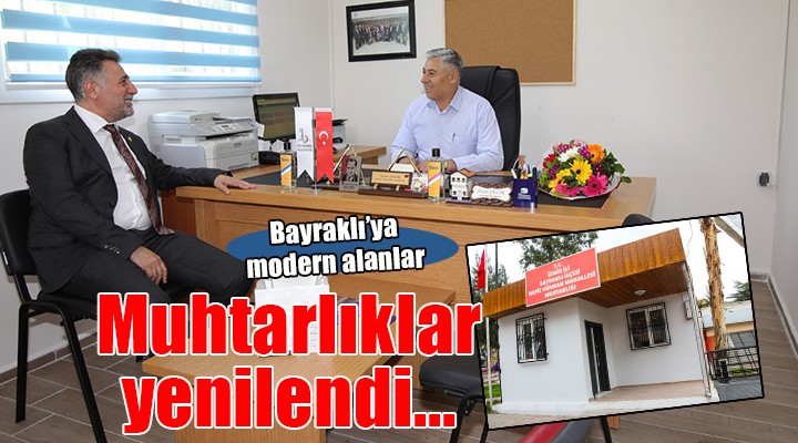 Bayraklı’nın çehresini değiştirecek projeleri ve çalışmalarıyla fark yaratan Bayraklı Belediyesi, muhtarlık binalarını modernize etmeye devam ediyor. Yaklaşık üç yıl önce başlatılan çalışmalar kapsamında yeni binalar inşa eden belediye ekipleri, muhtarlar için yeni hizmet alanları oluşturuyor. Yürütülen çalışmalar kapsamında Alpaslan, Fuat Edip Baksı, Soğukkuyu, Org. Nafiz Gürman, Çiçek, Bayraklı Merkez, Osmangazi, Refik Şevket İnce, Tepekule ve Yamanlar mahallerinin muhtarlık binaları yenilendi. Yeni hizmet alanları kısa sürede tamamlanarak muhtar ve vatandaşların kullanımına sunuldu. Çalışmalar, muhtarlar ve ilçe sakinleri tarafından memnuniyetle karşılandı.