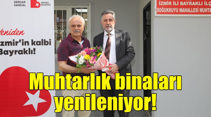 Yerel seçimlerden bu yana bir yandan ilçeye yeni bir kimlik kazandırmak için Bayraklı’nın çehresini değiştirecek önemli adımlar atan Bayraklı Belediyesi, bir yandan da muhtarlık binalarını modernize ediyor. Yeni binalar inşa eden belediye ekipleri, muhtarlar için yeni hizmet alanları oluşturuyor. 2020 yılında başlatılan yenileme çalışmaları kapsamında Alpaslan, Fuat Edip Baksı, Soğukkuyu, Org. Nafiz Gürman ve Çiçek Mahallesi olmak üzere 5 muhtarlık binası yenilendi. Ekipler, 5 yeni muhtarlık binası için de inşa çalışmalarını sürdürüyor. Bu yılki çalışmalarda; Bayraklı Merkez, Osmangazi, Refik Şevket İnce, Tepekule ve Yamanlar mahallerinin muhtarlık binaları yenileniyor. Yeni hizmet alanları kısa sürede tamamlanarak muhtar ve vatandaşların kullanımına sunulacak.