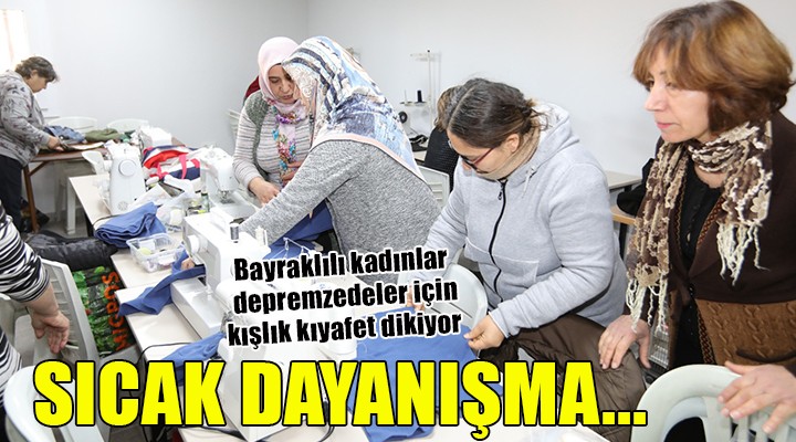 Bayraklı Belediyesi; dikiş-nakış kursiyerleri aracılığıyla depremzedeler için battaniye, eşofman ve mont dikimine başladı. Alpaslan Semt Merkezi’nde el emeği ile üretilen giyim eşyaları, tırlarla deprem bölgesine gönderilecek. Enkaz alanlarında arama kurtarma çalışmalarına da destek veren Bayraklı Belediyesi, 18 kişilik zabıta ekibini de bölgeye gönderdi. Başkan Sandal, “Bu acı hepimizin ve bu facianın üstesinden de dayanışmayla geleceğiz” dedi.