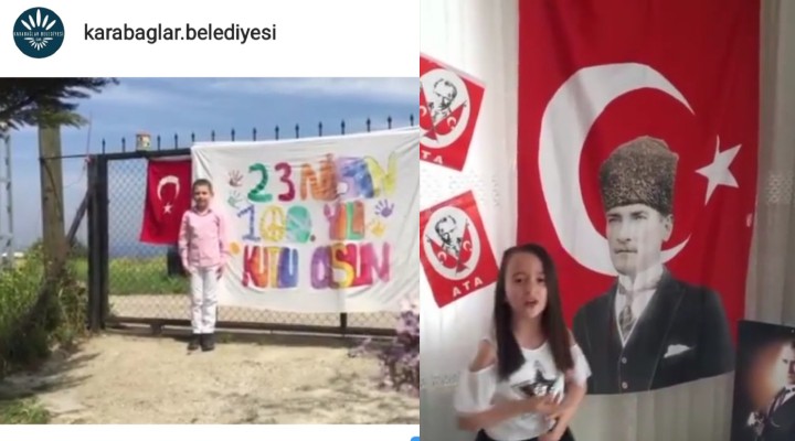 Koronavirüs salgınına karşı önlemler kapsamında evlerinden çıkamayan çocuklar, resim ve şiirlerini “[email protected]” e-posta adresine gönderdiler. Bu kapsamda yüzlerce çalışma, Karabağlar Belediyesi'nin sosyal medya hesaplarında paylaşıldı. Çocuklar şiir ve resimlerinde özellikle Gazi Mustafa Kemal Atatürk'e duydukları sevgi ve özlemi dile getirirken, Türkiye Cumhuriyeti'ne sahip çıkacaklarını mesajını verdiler.