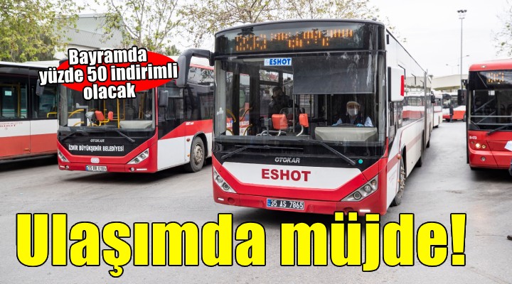 İzmir Büyükşehir Belediyesi, Ramazan Bayramı’nda kent içi toplu ulaşımda düzenlemelere gitti. İzmir Büyükşehir Belediyesi’ne bağlı toplu ulaşım kurum ve kuruluşları ile Büyükşehir-TCDD ortaklığıyla işletilen İZBAN, Ramazan Bayramı süresince İzmir Büyükşehir Belediye Meclisi kararı doğrultusunda yüzde 50 indirimli hizmet verecek. Cumhurbaşkanlığı’nca bir karar yayımlanması durumunda ise ulaşım hizmetleri ücretsiz yapılabilecek. İzmir Büyükşehir Belediyesi ESHOT Genel Müdürlüğü de mezarlıklara özel otobüs seferleri düzenleyecek.