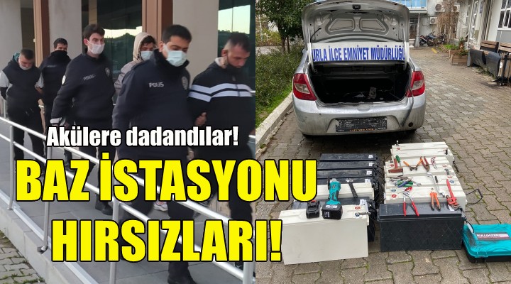 Alınan bilgiye göre, Besim Uyal Caddesi'nde bir telekomünikasyon şirketine ait baz istasyonunda kullanılan aküler çalındı. Yapılan ihbar üzerine harekete geçen Urla Emniyet Müdürlüğüne bağlı ekipler, 3 şüpheliyi kısa süre sonra plakasız bir otomobilde yakaladı.