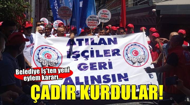 İşçiler dün gerçekleştirdikleri yürüyüşün ardından bugün Egemenlik Binası önüne çadır kurdu. Sabah saatlerinde binanın önünde toplanan işçiler eylemlerine burada devam etme kararı aldı.