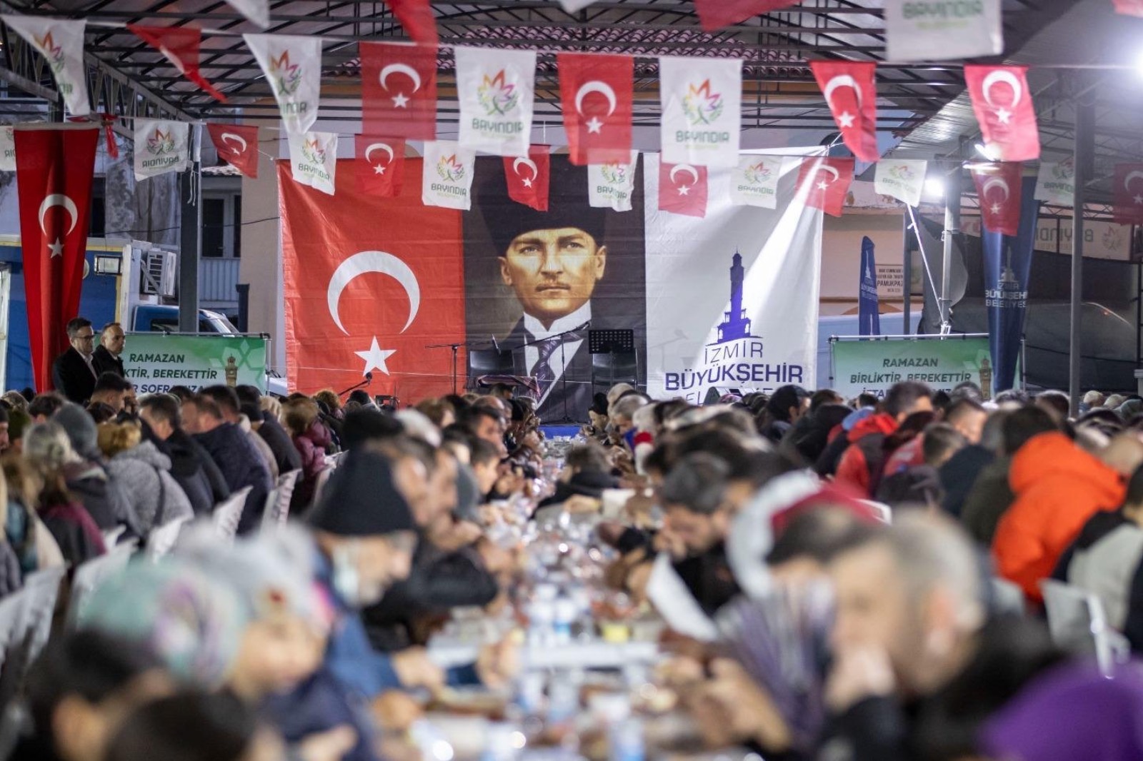 İzmir Büyükşehir Belediyesi’nin ramazan ayında 30 ilçede düzenleyeceği iftar buluşmalarının takvimi belli oldu. İlk iftar sofrası 19 Şubat’ta Gaziemir’de kurulacak. Program 19 Mart’ta Urla ile sonlanacak. Ramazan boyunca vatandaşlara 75 bin kişilik yemek sunulacak. Ayrıca İzmirli minikler için 9 bin 600 pamuk şeker dağıtılacak.