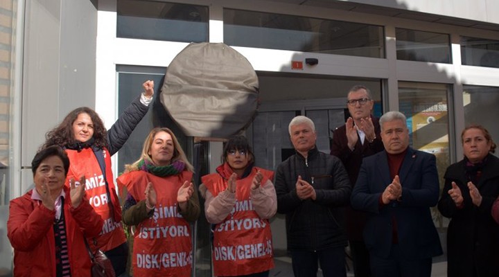 Bergama Belediyesi'nde işten çıkarılan 3 kadın, 'İşimizi istiyoruz" yazılı yelekler giyerek belediye binası önünde kararı protesto etti. Sabah saatlerinde eyleme başlayan Nazlı Deniz Tan, Alev Çakır ve Gonca Çetin'e CHP Bergama İlçe Başkanlığı, DİSK ve Bergama Demokrasi Platformu da destek verdi. CHP ilçe teşkilatı üyeleri basın açıklamasının ardından belediye binasının önüne siyah çelenk koymak istedi. Çelenk belediye içerisindeki bazı kişilerce alınıp kaldırılınca arbede yaşandı. Çelengin alınması için olaya müdahale eden işsiz kalan kadınlardan Alev Çakır'ın babası Durmuş Çakır'ın tartaklandığı iddia edildi.