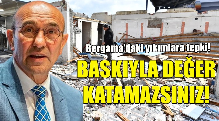 Yanındaki dükkanı yıkılarak molozları kapısının önüne kadar gelen esnaf Timuçin Cengiz, “30 yıldan beri bu işi yapıyorum. Yaşananlar her şey ortada. Hayatımda yaşamadığım şeyi şurada yaşıyorum. Bergama Belediyesi maalesef verdiği sözleri tutmadı. Yıkımlar başladı, üzülerek izliyoruz. İşimize büyük engel oluyor. Zorla çıkarılmaya teşebbüstür bu. İnsan haklarına aykırı. Verilen sözlerin hiçbiri yerine getirilmedi. Bizi zorluyorlar ama biz sonuna kadar direnmeye devam edeceğiz” diye konuştu.