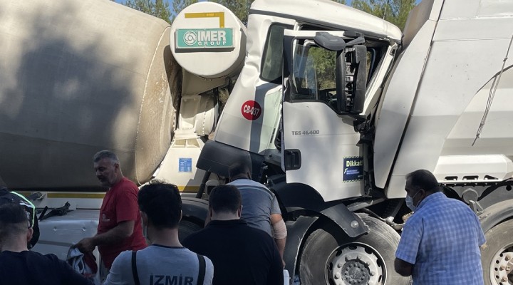 Alınan bilgiye göre, Himmet A. (42) yönetimindeki 48 AGB 216 plakalı beton mikseri, İzmir Çevre Yolu'nda Balçova yönüne giden M.Ş. (21) idaresindeki 35 KK 383 plakalı TIR'a, Limontepe Kavşağı yakınlarında çarptı.