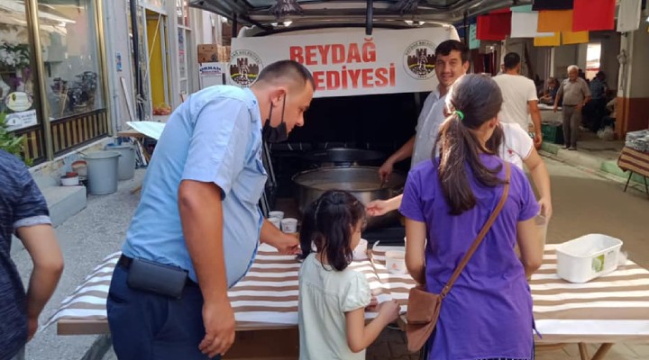 Beydağ Belediyesi tarafından aşure dağıtımı belediye binası önünde başlayıp Perşembe Pazarında devam etti. Aşure Beydağ Belediyesi Zabıta Amirliği ve personelleri tarafından bizzat vatandaşlara ikram edildi.