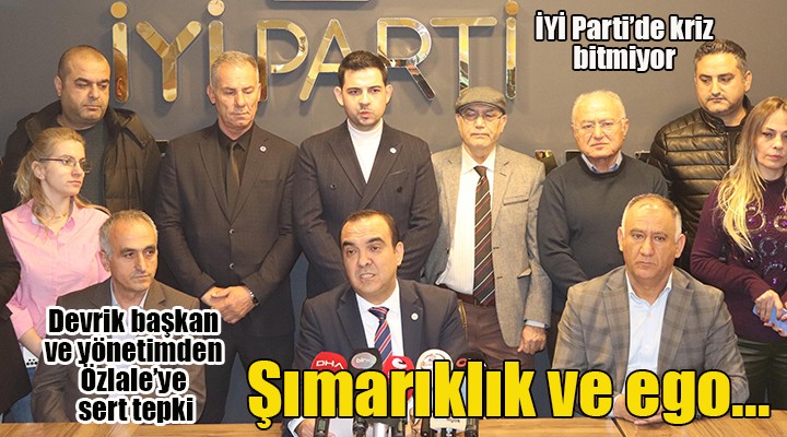 Özlale’nin ilçe ve il yönetimini dizayn etme çabası içinde olduğu vurgulanan açıklamada, “Ümit Özlale, adaylığı açıklandığı günden bugüne, il binasında alan tahsis edilmesine rağmen il binası dışında, seçim çalışmalarına İl Başkanı ve yönetimi hiçe sayarak birkaç kişi ile sürdürmekteydi. Son olayda da Ümit Özlale, müdahale yetkisi olmamasına rağmen il yöneticileri arasında geçen ve disiplin cezası gerektiren bir olayı bahane ederek, gerek partimizi gerekse Genel Başkanımız Sayın Meral Akşener’i zor durumda bırakmıştır. İYİ Parti İzmir İl Yönetim Kurulu, demokratik bir kongrede delegenin oyu ile seçilmiştir. Partinin tüm üyelerinin yeterlilik onayı anlamına gelen, Genel Seçim Temayül Yoklaması'na katılmadan kontenjan adayı olarak İzmir Milletvekili seçilen Ümit Özlale'nin, yerel seçimlere 80 gün gibi kısa bir süre kala İl Yönetimini görevden aldırarak teşkilatı dizayn etme çabası, kendisinin demokrasiye olan bakış açısını, onun için çalışan parti teşkilatına karşı demokrasiden uzak benmerkezci yönetim anlayışını açıkça ortaya koymaktadır. Seçim çalışmalarında ‘İzmirliyim, İzmir'in değerlerine sahibim’ diyen ve partimizin en iddialı belediye başkan adayı olarak kabul ettiği Ümit Özlale'nin, seçilerek göreve gelmiş il yönetiminin, şımarık bir kaprisle görevden el çektirilmesini sağlayarak, mevcut yönetime karşı kongrede kaybetmiş kişileri yönetime getirmek istemesi İzmir'in demokratik, cumhuriyetçi, özgür, çağdaş yapısıyla bağdaşmadığının göstergesidir. Bizler İYİ Parti’nin neferleriyiz ve her zaman da partimizin emrinde olacağız. Biz dün vardık, bugün varız, 1 Nisan'dan sonra da burada olacağız” ifadelerine yer verildi.