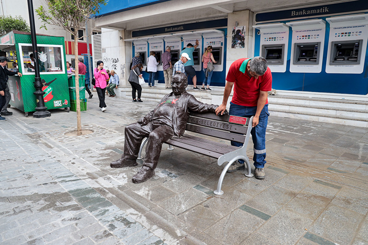 Karşıyaka Belediyesi, kent kültürüne katkı sunan ve kentle özdeşleşen isimleri kamusal alanlarda sokak, cadde, park ve meydanlarla, heykel ve rölyeflerle ölümsüzleştiriyor; kent hafızasını nesilden nesile aktarıyor. Bu heykellerin en çok sevilenleri arasında yer alan ve belki de en ünlüsü Bir Baba Hindi, ait olduğu yere geri getirildi.