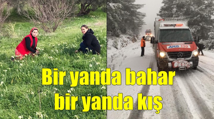 Sosyal medya hesabından bir açıklama yapan Başkan Soyer, “İşte İzmir; Bergama, Kemalpaşa, Ödemiş, Kiraz köylerinde ekiplerimiz karla mücadele ederken, Karaburun’un mis kokulu nergisleri baharı müjdeliyor. Tüm mevsimleri doya doya yaşayacağımız haftasonlarına az kaldı" mesajını verdi.