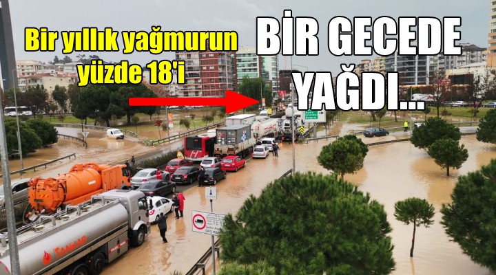 İzmir’de dün gece Güzelyalı’ya 125,6, Karabağlar’a 119, Bayraklı’ya 110,4, Balçova’ya 95,3, Menderes’e 80,6, Bornova’ya 64, Foça’ya 57, Aliağa’ya 55,3, Kınık’a 48,3, Karaburun’a 48,2 ve Buca’ya 47 kilogram yağış düştü. Meteoroloji Genel Müdürlüğü’nün verilerine göre İzmir’de Şubat ayı yağış ortalaması 102,3 kilogram iken, İzmir bir gecede 126 kilogram yağış aldı.