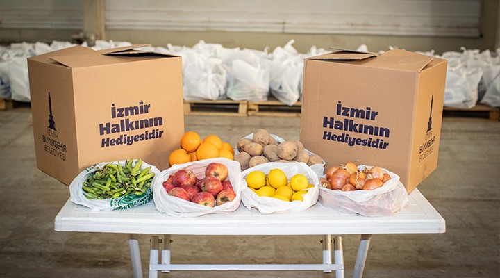 Salgın günlerinde üreticiyi de destekleyen İzmir Büyükşehir Belediyesi, kooperatiflerden aldığı 57 bin 500 adet taze enginar, 65 bin kilogram bakla, 65 bin kilogram bezelye ve 32 bin adet marulu da gıda paketlerine ekledi. Böylece hem tarım işçisi bulmakta sorun yaşayan üreticilere destek olundu hem de yurttaşlara taze sebze ve meyveyle ulaştırıldı.