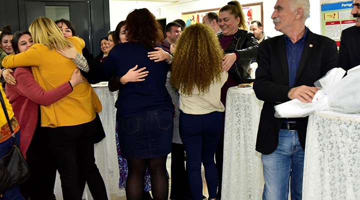 Başkan İduğ, yarıyıl tatili öncesi öğretmenleri ve öğrencileri ziyaret ederek, müjdeli haberi DİSK Genel Başkanı Arzu Çerkezoğlu, Genel-İş Genel Başkanı Remzi Çalışkan ve DİSK Ege Bölge Temsilcisi Memiş Sarı’nın da katıldığı toplantıda verdi. Öğretmenler Başkan İduğ’un sürpriz ziyarette verdiği müjdeyi birbirlerine sarılarak kutladı, sevinç gözyaşları döktü.