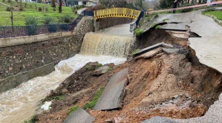 İzmir'de önceki geceden itibaren etkili olan sağanak, toprak zemini yumuşatarak yer yer çökmeler ile su baskınlarına neden oldu. Bornova’nın Eğridere Mahallesi'nde bulunan Bornova Deresi’nin Ergene Mahallesi’nde bulunan bölümünün istinat duvarı, sabaha karşı büyük bir gürültüyle çöktü. Dere kenarında, yaya ve araçların kullandığı yolu koruyan istinat duvarının çökmesi paniğe neden oldu. Toprak kayması da yaşanan bölgeyi, polis güvenlik şeridi ile çevirdi.