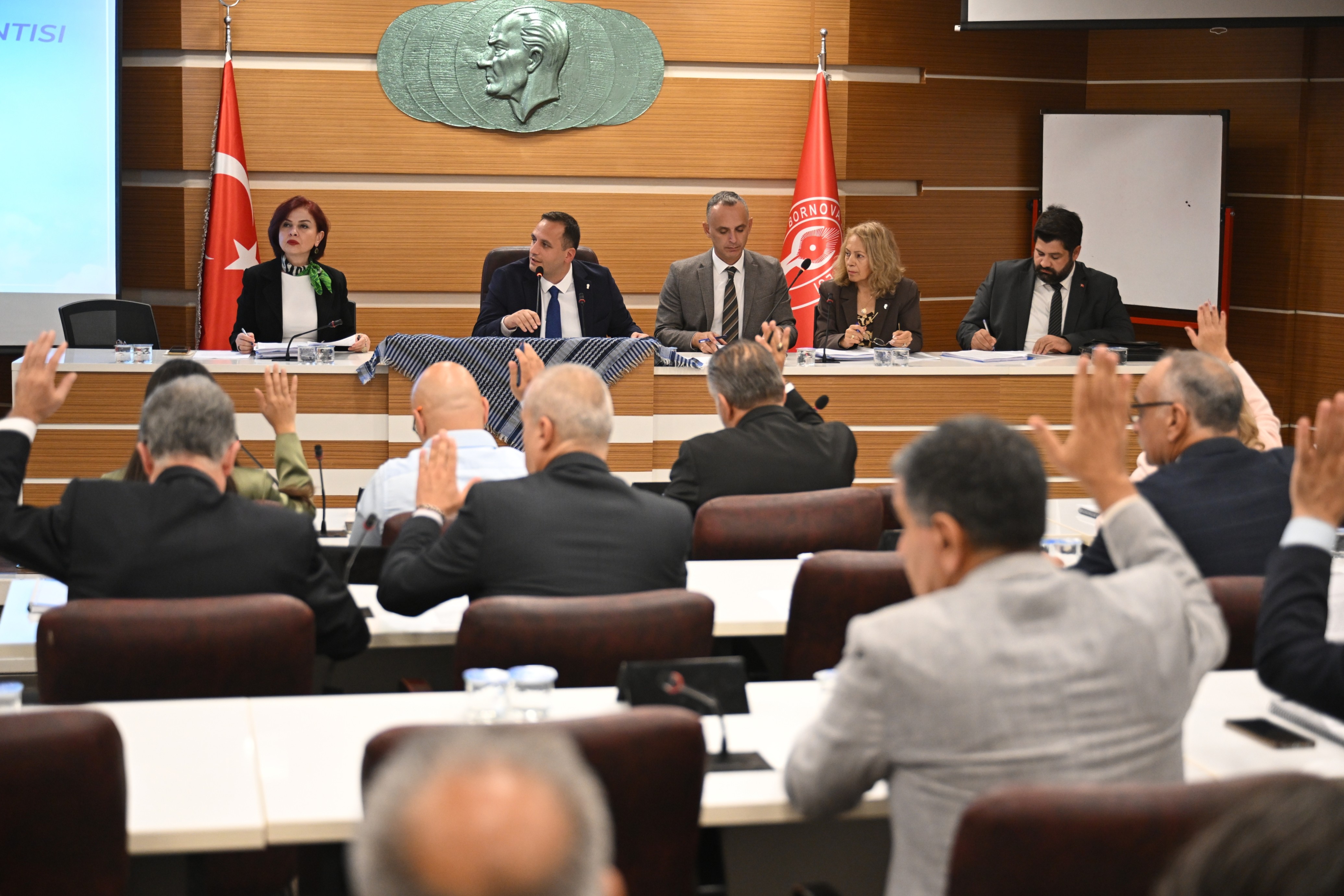 Bornova Belediyesi Ekim Ayı Olağan Meclis Toplantısı’nın açılışında Başkan Ömer Eşki, Yaser Arafat’ın poşusunu kürsüye asarak Filistin halkına destek mesajı verdi. Mecliste ayrıca Ergene Mahallesi’ndeki bir parka 1981’de şehit olan Hv. Plt. Üstğm. Mustafa Bilgen’in adı verildi. 2026 bütçe görüşmeleri ise 14 Ekim’de yapılacak.