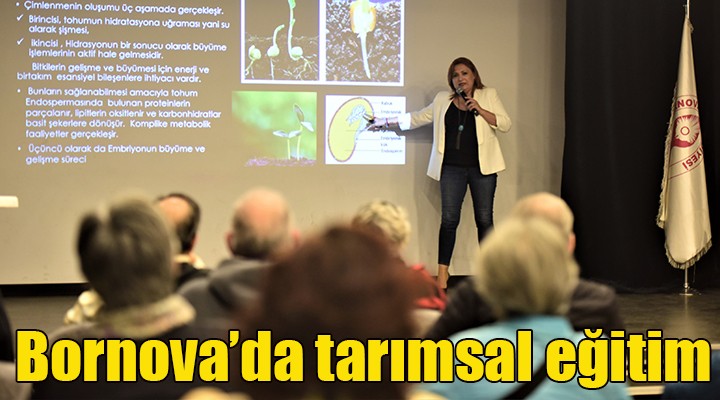 Bornova’nın kırsal mahallelerinden yerel üreticilerin yanısıra doğal tarım gönüllüsü Bornovalılar Uğur Mumcu Kültür Merkezi Çok Amaçlı Salonu’nda gerçekleşen eğitime yoğun ilgi gösterdi.