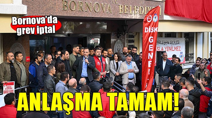 SONKALEİZMİR-Bornova Belediye Başkanı Ömer Eşki, Genel İş 7 No'lu Şube aralarında süren toplu sözleşme görüşmelerinde anlaşma sağlandığını duyurdu. Daha önce çıkmaza giren görüşmeler sonunda anlaşma sağlanamasa işçiler bugün greve başlayacaktı.