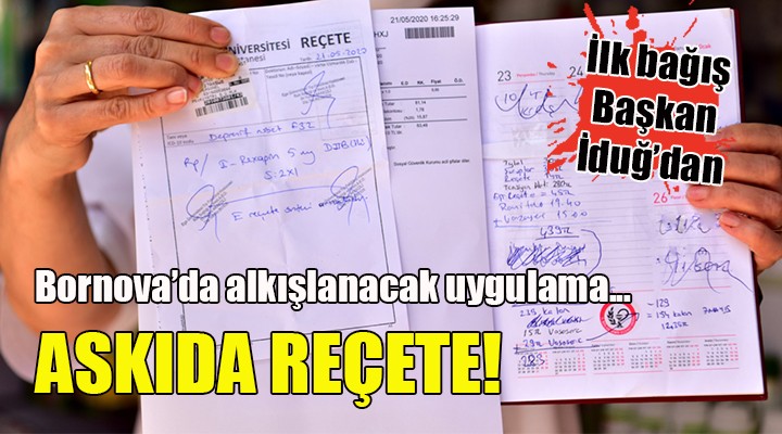 Bornovalılar, Belediyenin resmi web sitesinde bulunan “Askıda Reçete” bölümünde yayınlanan eczane listesinden arzu ettikleri biriyle iletişime geçerek borcu kapatabilecek. İlk bağışı yapan Bornova Belediye Başkanı Dr. Mustafa İduğ, “Özellikle bazı ağır hastalıkların tedavisinde kullanılan ilaçlarda devletin karşıladığı bedel dışında kalan miktar bile ihtiyaç sahibi vatandaş için karşılanamayacak kadar büyük bir yük olabiliyor. Koronovirüs salgını nedeniyle pek çok Bornovalı da işinden ya da gelirinden oldu ya da ekonomik kayba uğradı. Bu nedenle bu çalışmanın her zamankinden daha önemlidir. Biliyor ve inanıyorum ki Bornova birlikte mücadele edecek, birlikte başaracak ve hep birlikte iyileşecektir. Başta iş adamları olmak üzere tüm hayırseverleri kampanyamıza destek olmaya davet ediyorum” diye konuştu.
