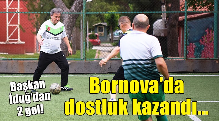 Keyifli anlara sahne olan maçta 2 golle yıldızlaşan Başkan İduğ, aralarında Bornova Kaymakamı Fatih Genel’in de olduğu taraftarlardan büyük alkış aldı. Centilmenlik içerisinde geçen bol gollü maçın ardından her iki takımın oyuncuları taraftarları selamladı.