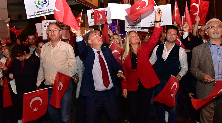 Binlerce Bornovalı’nın katıldığı fener alayı coşkusu, Mustafa Kemal Caddesi boyunca katılanlarla büyüdü. Bornova Belediye Başkanı Dr. Mustafa İduğ ve CHP İzmir Milletvekili Atila Sertel’in eşleriyle katıldığı yürüyüşte siyasi partilerin ve sivil toplum kuruluşlarının temsilcileri de yerlerini aldı. Dev Atatürk posteri ve Türk Bayrağı’nın en önde elllerde taşındığı yürüyüşte renkli görüntüler de oluştu. Küçük bir kız çocuğunun bando takımına şeflik yaptığı anlar büyük ilgi uyandırırken, Bornova Selanikliler Kültür ve Dayanışma Derneği Gençlik Kolları üyesi çocukların İstiklal Marşı’nı ezberden okuduğu anlar Cumhuriyet Meydanı’nda büyük coşku yaşattı.