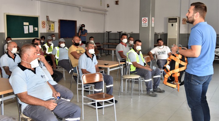 Temizlik İşleri Şantiyesinde düzenlenen eğitimlerde, İş Güvenliği Uzmanları Temel İş Sağlığı ve Güvenliği, yüksek yerlerde çalışırken alınması gereken önlemler ve kullanılacak olan teçhizatlar hakkında personeli bilgilendirdi. İş güvenliği, iş kazaları, çalışma koşulları iş yerinde olabilecek tehlikeler gibi konuların anlatıldığı eğitimler teorik ve pratik olarak iki şekilde gerçekleştirildi.