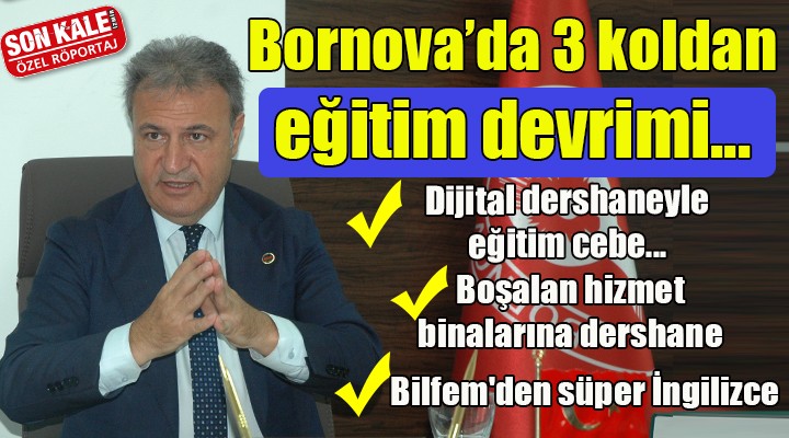 Röportaj: Mustafa AKBAŞ- Fotoğraflar: Abdullah ÇELEBİ/SONKALEİZMİR- Enerjisi ve dikkat çeken projeleri ile ilçeye yeni bir soluk getiren Bornova Belediye Başkanı Dr. Mustafa İduğ, son rötuşlarını yaptıkları dev eğitim hamlesini SONKALEİZMİR'e anlattı. Otomotivci ve işadamı kimliğinin yanı sıra İzmir Ekonomi Üniversitesi'nde KOBİ Kaynak Planlama ve Bütçe Yönetimi dersleri vermesi nedeniyle "eğitimci" yönü de bulunan Başkan İduğ, Bornovalı öğrencilere altın değerinde 3 müjde verdi.