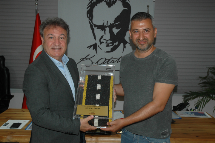 (Başkan Mustafa İduğ, SONKALE'den Abdullah Çelebi'nin sorularını yanıtladı. İlk ürettikleri asfaltla da poz verdi.)