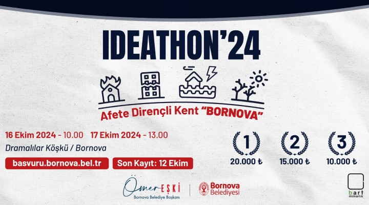 16-17 Ekim 2024 tarihlerinde Dramalılar Köşkü’nde gerçekleşecek etkinlikte, katılımcılar afetlere karşı dirençli bir kent oluşturmak için yenilikçi projeler geliştirecek. Başvurular, 12 Ekim'e kadar basvuru.bornova.bel.tr adresinden kabul edilecek.