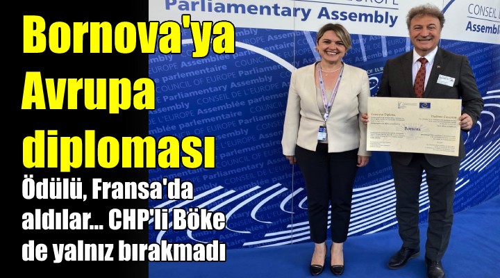Bornova Belediyesi, Bornova’nın Avrupa’daki bilinirliğini arttırmak ve diğer kentlerle yeni işbirlikleri yapmak amacıyla başvurduğu ‘Avrupa Ödülü’nün ilk aşaması olan “Avrupa Diploması Ödülü’nü geçtiğimiz Nisan ayında kazandı. Bornova Belediyesi, ödülünü, Avrupa Konseyi Türkiye Daimi Temsilcisi Büyükelçi Kaan Esener, Avrupa Konseyi Parlamenterler Meclisi Sosyal İşler, Sağlık ve Sürdürülebilir Kalkınma Komitesi Başkanı, CHP Genel Sekreteri ve İzmir Milletvekili Selin Sayek Böke, Avrupa Konseyi Parlamenterler Meclisi Üyesi ve CHP Ankara Milletvekili Haluk Koç, Avrupa Konseyi temsilcileri ve belediye başkanlarının katıldığı törende aldı.