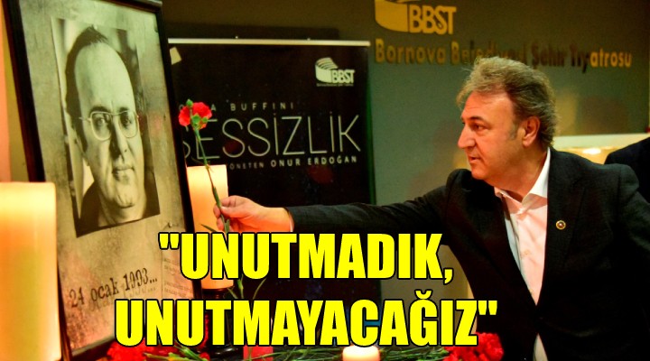 Tüm Bornovalılar’ı etkinliği takip etmeye davet eden Bornova Belediye Başkanı Dr. Mustafa İduğ, Uğur Mumcu’nun her şeyden önce Atatürkçü bir yurtsever olduğunu belirterek, “O, yaşamı boyunca herkes için ve her yerde demokrasiyi, emeği ve çalışanın hakkını savundu. Sömürüye, soyguna, talana şiddete, din tüccarlarına karşı çıktı, laikliği, bilimi ve demokrasiyi savundu. Barıştan yana oldu. Uğur Mumcu her zaman yüreğimizde yaşayacak. Hiç zaman unutmayacağız, unutturmayacağız” diye konuştu.