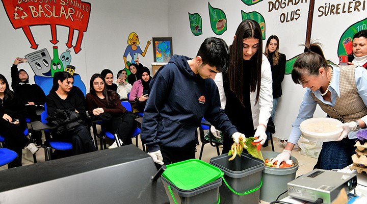Bornova Belediyesi İklim Değişikliği ve Sıfır Atık Müdürü Fatma Mesutgil, biyobozunur atıkların iklim değişikliğine etkisini anlatarak organik atıkların kompost üretimiyle geri dönüştürülebileceğini vurguladı. Atölyeye katılan öğrenciler, S.S. İzyaşam Kooperatif Başkanı Nevin Bağdatlı ve Zeytince - Ekolojik Yaşamı Destekleme Derneği temsilcilerinin desteğiyle Bokashi Kovaları kullanarak kompost üretim sürecini uygulamalı olarak deneyimledi.