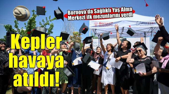 Bornova Belediyesi’nin Özgül Gündüz Sağlık Köyü’nde projelendirdiği Sağlıklı Yaş Alma Merkezi, ilk mezunlarını verdi. Bahçede düzenlenen törende mezuniyet belgelerini Bornova Belediye Başkanı Ömer Eşki’nin elinden alan 60 yaş üstü Bornovalılar, keplerini büyük bir coşku ve gururla havaya fırlattı.