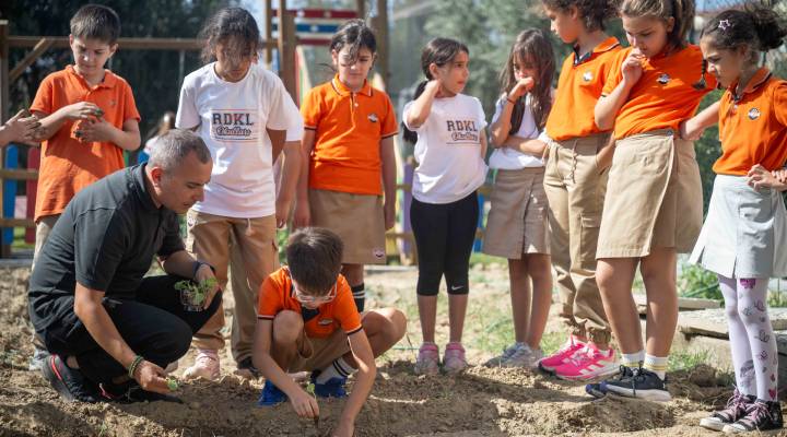 Bornova’da bir özel ilkokulun öğrencileri, okul bahçelerine kışlık sebze fideleri dikti. Bornova Belediyesi Tarımsal Hizmetler Müdürlüğü tarafından yürütülen etkinlikte öğrenciler; lahana, karnabahar, brokoli, kırmızı lahana, kereviz ve marul fidelerini toprakla buluşturdu. Ayrıca bahçelere tere, marul ve dereotu tohumları da ekildi.