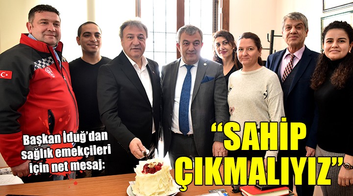Başkan Mustafa İduğ, 14 Mart Tıp Bayramını kutladığı Bornova Belediyesi Sağlık İşleri Müdürlüğü çalışanlarına özverili çalışmaları nedeniyle teşekkür ederek birlikte pasta kesti.