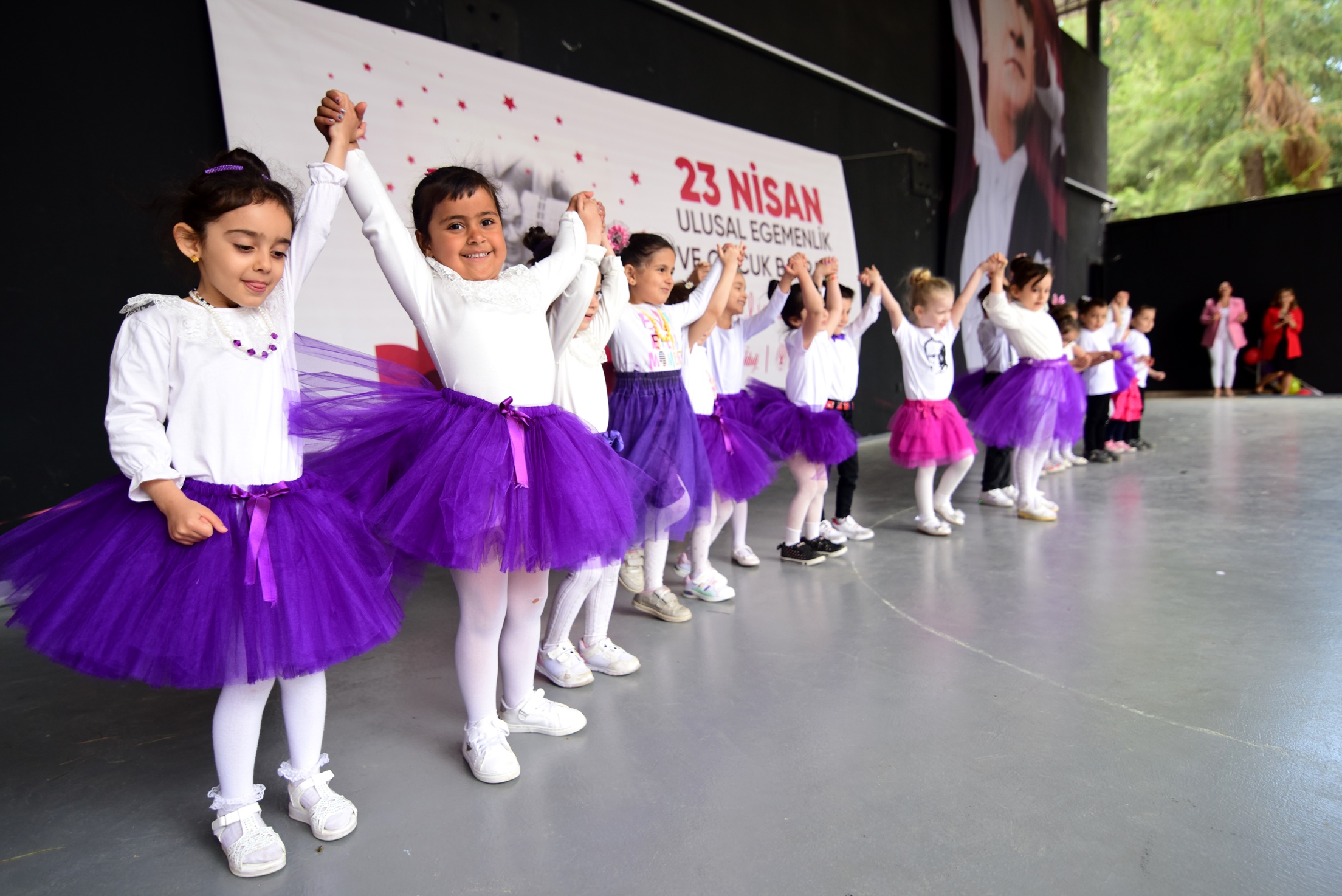 Bornova Belediyesi’nin Altındağ, Evka 3, Mevlana, Naldöken, Pınarbaşı, Serintepe, Atatu?rk Mahallesi ve Doğanlar’da iki nokta olmak üzere açtığı toplam 9 Çocuk Oyun Aktivite Merkezi’nden yararlanan minikler 23 Nisan’a özel olarak hazırlanan programla Bornovalılar’ın karşısına çıktı. Bornova Belediyesi Ayfer Feray Açıkhava Tiyatrosu’nda her merkezin ayrı gruplar halinde birer gösteri ile sahne aldığı etkinlik, ailelere duygu dolu anlar yaşattı. Anne ve babalar cep telefonları ile çocuklarının görüntüsü ve fotoğrafını çekmek için birbiriyle yarıştı. Çoğu ilk kez sahneye çıkan 3-6 yaş arası 500 çocuk performanslarıyla büyük alkış aldı. Etkinliğin sonunda tüm çocuklar sahnede hatıra fotoğrafı çektirip İzmir Marşı’nı coşkuyla hep bir ağızdan söyledi.