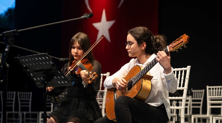 Gala Konseri’nde piyanodan kemana, bağlamadan gitara, kanundan vurmalı çalgılara, ritimden halk oyunlarına ve çocuk korosuna dek kadar birçok farklı branşta eğitim alan kursiyerler sahnedeydi. Her biri izleyiciden büyük alkış alırken, sahneye ilk kez çıkan minik sanatçılar heyecanlarıyla geceye ayrı bir renk kattı.