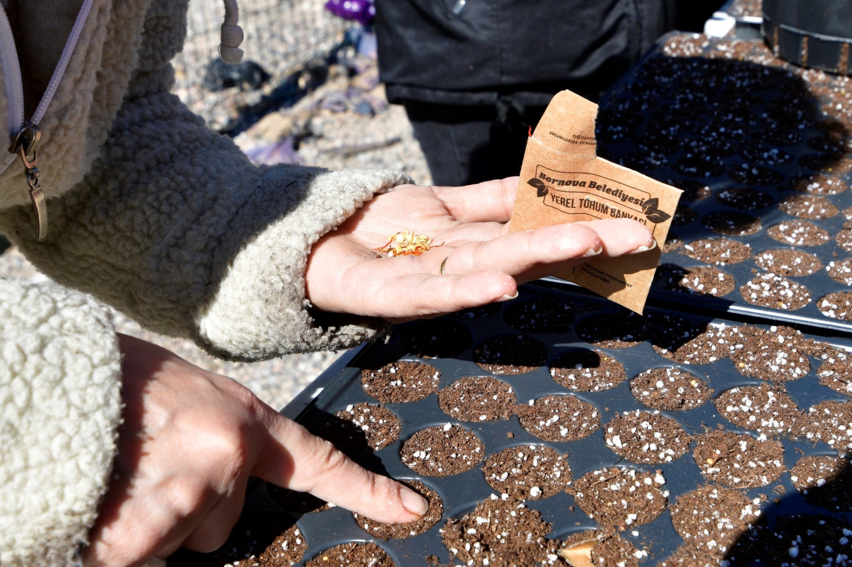 Bornova Belediyesi’nin Evka 4 Kent Bostanı’ndan faydalanan kadın üreticiler, Bornova Belediyesi yerel tohum bahçelerinden elde edilen yerel çeşit domates, biber ve patlıcan tohumlarını ekerek yaz sezonu hazırlıklarına başladı. Kadın üreticilere ayrıca tohum ekimi ve çimlenme süreçleri hakkında uygulamalı bilgiler verilerek üretimin bilinçli ve verimli şekilde sürdürülmesi sağlandı.