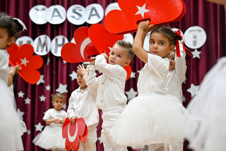 Ailelerinin yoğun ilgi gösterdiği etkinlikte, minikler performanslarıyla büyük beğeni toplarken veliler de cep telefonlarıyla bu özel anları ölümsüzleştirdi. Salonda renkli görüntüler oluştu, Cumhuriyet coşkusu miniklerin enerjisiyle birleşti.