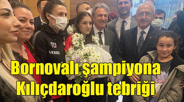 SONKALEİZMİR- CHP Genel Başkanı Kemal Kılıçdaroğlu, İzmir ziyaretini tamamlayıp Adnan Menderes Havalimanı'na geçtiği sırada, önceki gün Azerbaycan'da düzenlenen turnuvada dünya şampiyonluğu olan, eve dönüş yolundaki milli cimnastikçi Sıla Karakuş ile karşılaştı.