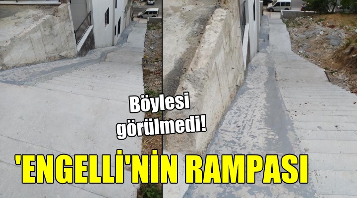 SONKALEİZMİR- İzmir'in en kalabalık ilçesi Buca'daki Şirinyer Yörük Ali Efe Parkı'nın yanında bulunan engelli rampası 'bu kadarına pes' dedirtti. Yaklaşık 50 metre uzunluğunda, dimdik yokuşa yapılan merdivenlerin hemen yanı başındaki engelli rampası şaşırttı. Dik yokuşta kurulu rampanın yanına herhangi bir koruma aparatı yahut korkuluk takılmamış olması dikkati çekti. Yurttaşlar, ürkücü bir görüntü oluşturan rampadan bugüne kadar inen ya da çıkan hiçbir engelliyi görmediklerini söyledi. Sosyal medyada da eleştiri konusu olan rampayla ilgili, "Buradan inebilen engelli artık engelli değildir. Zaten ölmüştür artık" yorumları yapıldı.