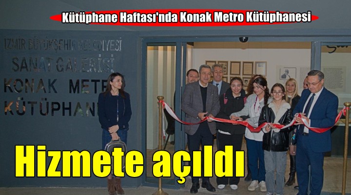 İzmir'de 61. Kütüphane Haftası İzmir Büyükşehir Belediyesi'nin düzenlediği etkinliklerle kutlanıyor. Kitaba erişimi kolaylaştırmak ve okuma alışkanlığını artırmak amacıyla kente yeni kütüphaneler kazandıran Büyükşehir, Kütüphane Hatfası etkinlikleri kapsamında Konak Metro Kütüphanesi'ni hizmete aldı. Kütüphanenin açılış törenine İzmir Büyükşehir Belediye Meclis Üyesi İsmail Sarı, İzmir Büyükşehir Belediyesi Kültür ve Sosyal İşler Dairesi Başkanı Sedat Kirt ile yurttaşlar katıldı.