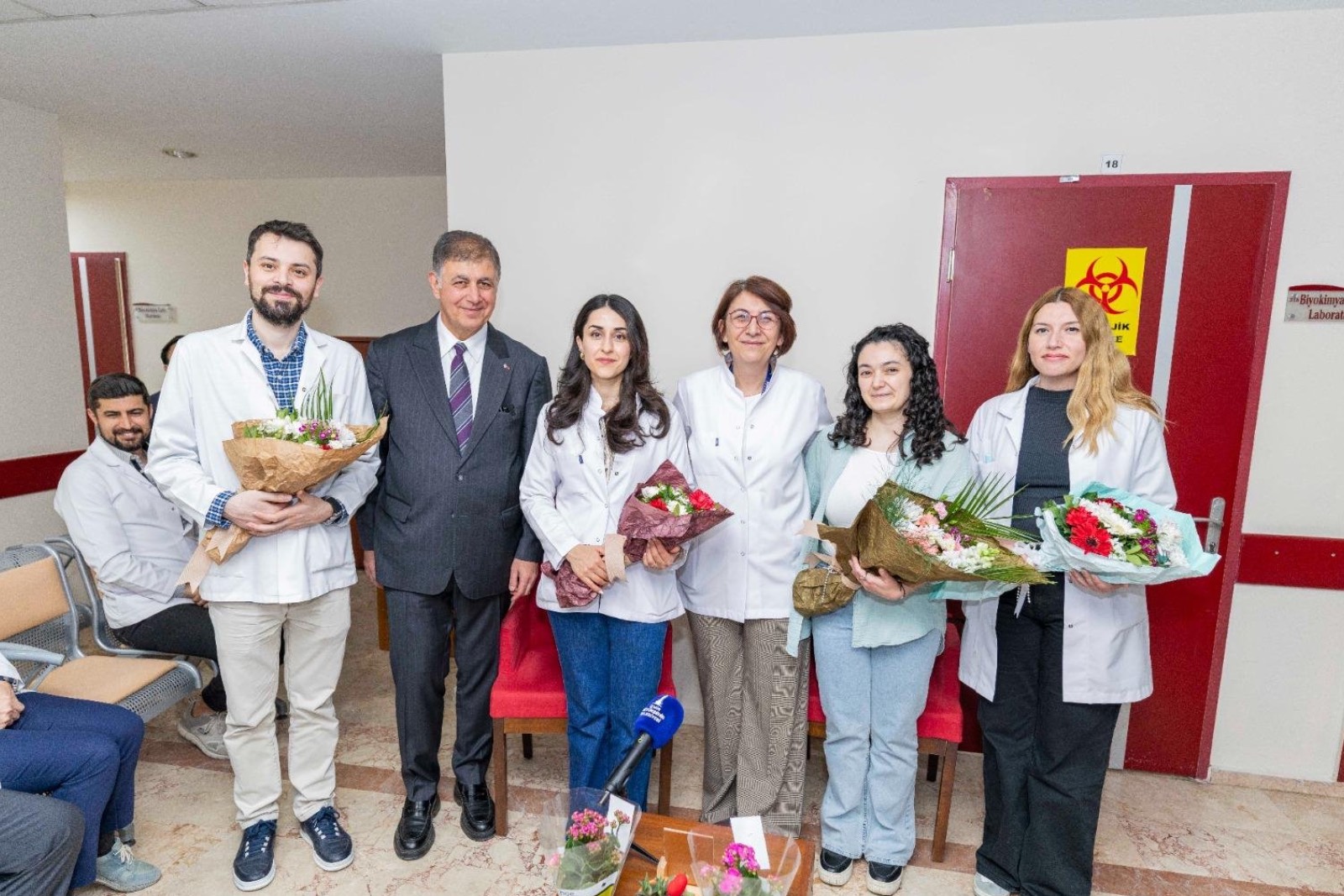 Ziyaretin ardından Başkan Tugay ve Eşrefpaşa Hastanesi hekimleri ile sağlık çalışanları 14 Mart Tıp Bayramı anısına fotoğraf çektirdi.