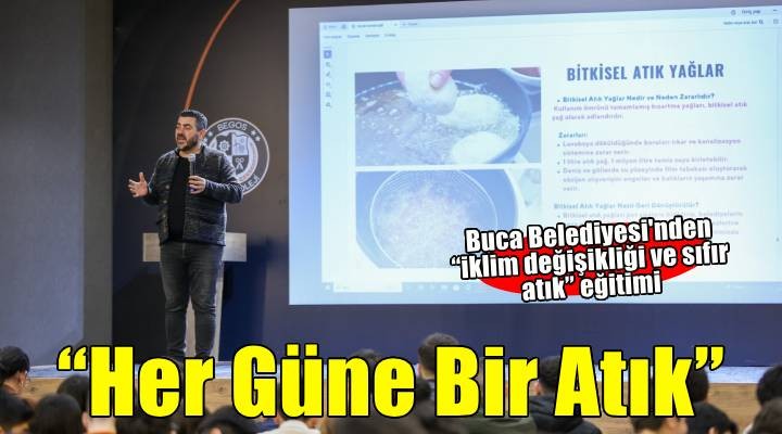 Çevre dostu projelere imza atan Buca Belediyesi, okullardaki iklim değişikliği ve sıfır atık eğitimlerine devam ediyor. Eğitimler sonrasında “Her Güne Bir Atık” kampanyası çerçevesinde, öğrencilerin evlerinden getirdiği atık malzemeler toplanıyor. Böylece gelecek nesillerde çevre bilinci oluşturulurken ülke ekonomisine de katkı sağlanıyor. Son olarak Buca Organize Sanayi Bölgesi Mesleki ve Teknik Anadolu Lisesi’nde Buca Belediyesi çevre mühendisleri tarafından gençlere aydınlatıcı bilgiler verildi..