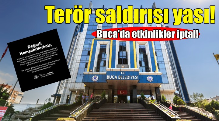 “Ankara’da gerçekleştirilen hain terör saldırısı nedeniyle bugün Meme Kanseri Farkındalık Etkinliği kapsamındaki yürüyüş ve gösteriler iptal edilmiş olup, 14.30’da Cemal Yetginer Etüt, Meslek ve Sanat Atölyesi’nde yalnızca seminer düzenlenecektir. Öte yandan 26 Ekim Cumartesi günü düzenlenecek Buca Belediyesi Cumhuriyet Yürüyüşü ileri bir tarihe ertelenmiştir.