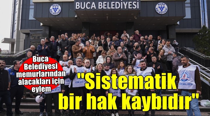 Buca Belediyesi önünde toplanan memurlar adına basın açıklaması yapan Tüm Bel-Sen İzmir 2 No'lu Şube İdari Sekreteri Nurcan Hükenek, alacakları için 3 gündür eylem yaptıklarını belirtti.