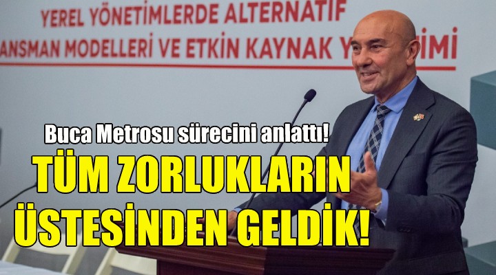 Başkan Soyer, Buca Metrosu'nun İzmir’i dik kesen ilk metro hattı olacağını ifade ederek “Buca İzmir’in en yoğun nüfuslu ilçesi. 400 bin kişiyi taşıdığınız zaman da 45 milyon euro ile borcu geri ödemeye başlıyorsunuz. Kimsenin cebinden bir kuruş çıkmadan, kendi kendini ödeyen bir yatırım kazanmış olacak İzmir ve tarihinin en büyük projesini de hayata geçirmiş olacak. Bununla iftihar ediyor ve gurur duyuyoruz. Bu noktaya gelene kadar çok sayıda bildiğiniz, bilmediğiniz engelle karşılaştık. Ancak çok şükür ortak akıl, bilim ve vicdan bize yol gösterdi ve bunların hepsinin üstünden geldik” ifadelerini kullandı.