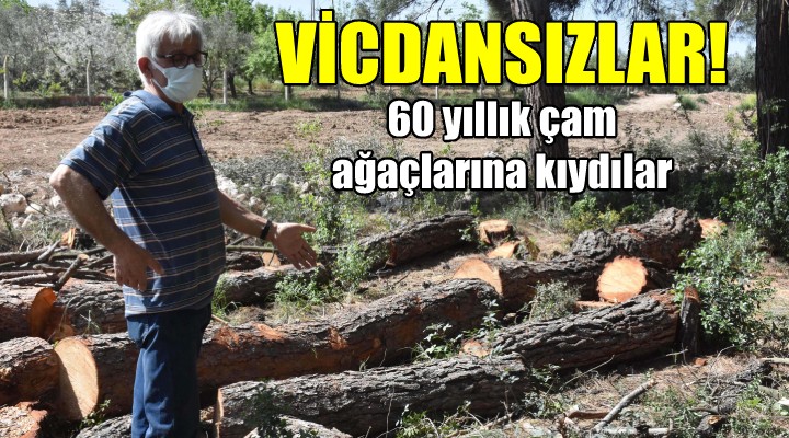 "1995 yılında kadastro çalışması yapıldı. Benim yaptığım evin bir kısmı Hazine arazisinin içinde kaldı. Sorunun giderilmesi için ya satılması ya da kiraya verilmesi gerekiyordu. Ancak benden boşaltmamı istediler. Boşaltamam çünkü arazimde çam ağaçları var, sulama havuzum var. Hırsızlık olaylarını önlemek için bir sınır olması amacıyla çit çektim. Amacım güvenliği sağlamaktı. Geçen 18 Mart'ta buradan yer satın alan bir müteahhit çıktı geldi. 'Burası benim" diyor. Ağaç keseceğini söylüyordu. 'Paldır küldür ağaç kesemezsin' dedim. En azından ihtarname çekmesi lazım. İtiraz edeceğimi ve bize süre vermesini istedim. Birkaç gün sonra gelip, ağaçları kesti. Jandarmayı, Buca İlçe Tarım Müdürlüğü'nü, Çiftçi Malları Koruma Kurulu'nu aradım. Son olarak ormancılardan biri geldi. Kadim sınırdaki ağaçların kesilebileceğini ama diğerlerinin tartışmalıysa kesilemeyeceğini söyledi. Kesim işlemi durduruldu ancak o ana kadar 12 çam ağacı kesildi. Kesilen ağaçlardan 3'ü en az 60 yıllıktı. 9'u da en az 40 yıllıktı. 16 zeytin ağacı vardı, onları da kesip götürdüler."