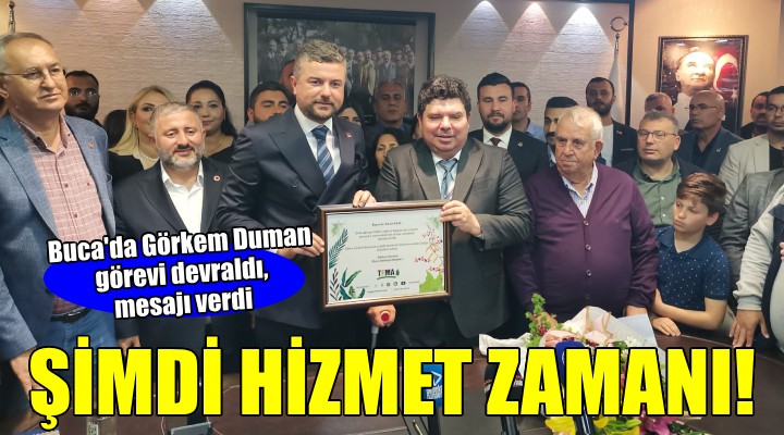 CHP Eski Milletvekili Tacettin Bayır, Görkem Duman'ın CHP rozetini çıkarıp Türk Bayrağı olan rozeti taktı. Bayır, "Görkem Duman ayrım yapmaksınız Buca'da herkesin başkanı olacak" dedi. CHP Eski İzmir Milletvekilleri Kamil Okyay Sındır ile Atila Sertel da Duman'a başarılar diledi.