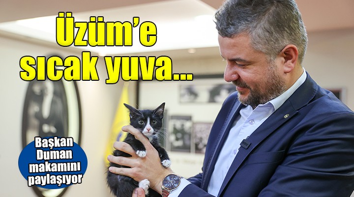Kısa sürede makamın maskotu haline gelen Üzüm, gelen konukları kapıda karşılamaya başladı, sevimliliğiyle ilgi odağı oldu. Buca Belediye Başkanı Görkem Duman, “Buca’nın simgesi olduğu için adını Üzüm koyduk. Onun sayesinde tüm günün yorgunluğunu unutuyoruz. Bugünlerde bir can dostu sahiplenmenin önemini de biliyoruz. Herkesi bir can dostu sahiplenmeye davet ediyorum” dedi.